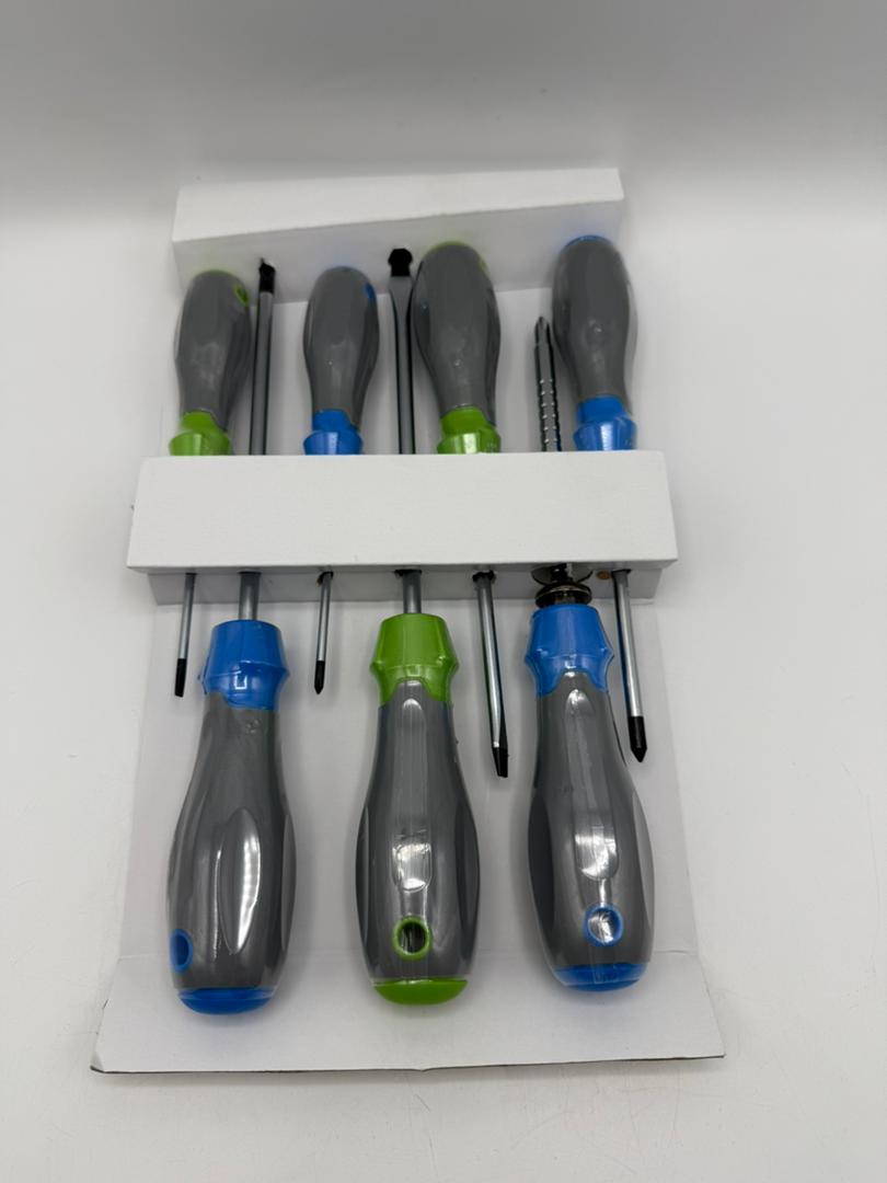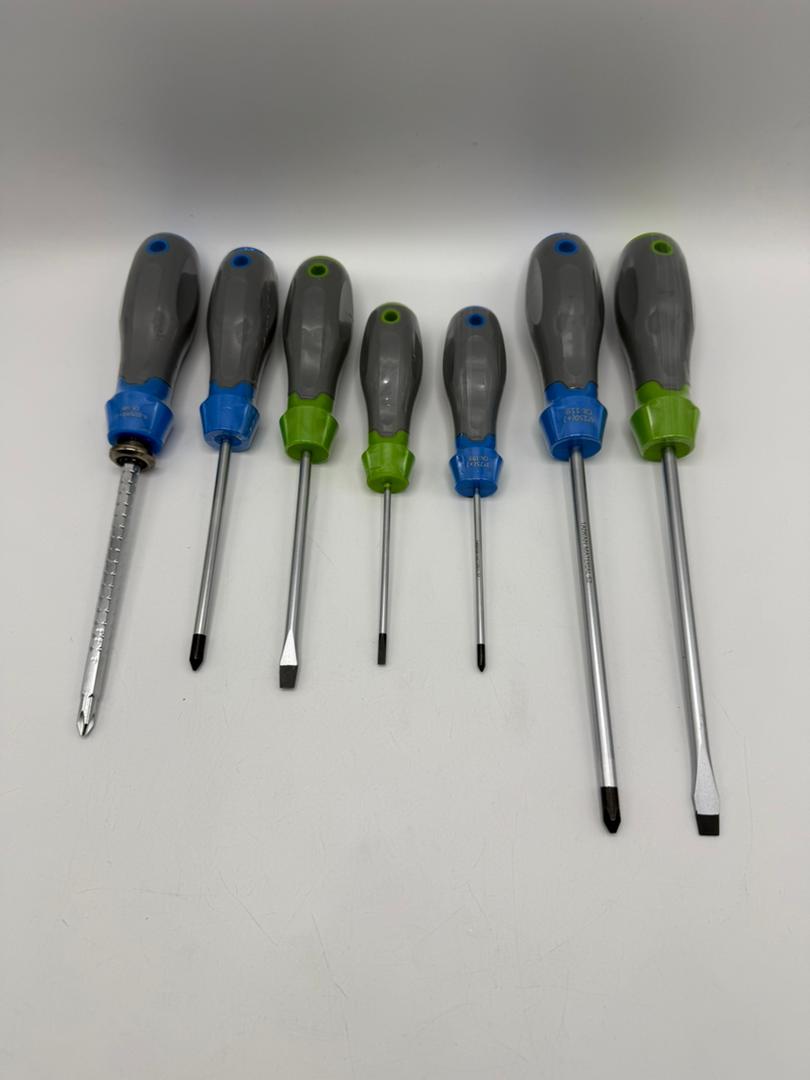 معرفی محصول ست 7 عددی پیچگوشتی میله اصلی از جنس آلیاژ فولادی S2 دسته ABS با روکش TPR طراحی ارگونومی با استحکام بسیار عالی دارای 3 عدد پیچ گوشتی دو سو در سایز های مختلف دارای 3 عدد پیچ گوشتی چهار سو در سایز های مختلف دارای پیچ گوشتی دو طرفه دنده ای و قابل تنظیم