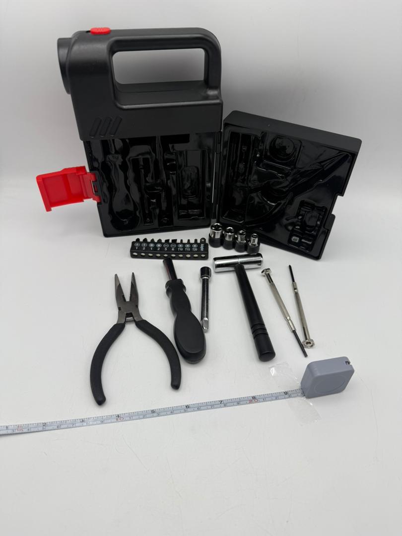جعبهی ابزار فوق یکی از مجموعههای کاربردی است که در انجام کارهای تعمیراتی بسیار کارامد است. این محصول در حالت بسته ظاهری مانند یک چراغ قوهی بزرگ دارد. این چراغ قوه نوردهی مناسبی داشته و دستهی آن در قسمت بالایی جعبه قرار گرفته است. با باز کردن این چراغ قوه یک جعبهی ابزار کوچک نمایان میشود. ابزارهای این جعبه بهشکل منظمی در مکانهای مشخص قرار گرفتهاند. این موضوع مانع از بههم ریختگی آنها شده و کاربر میتواند در زمانی کوتاه ابزار مورد نیاز خودر را پیدا کرده و مورد استفاده قرار دهد. ابزارهای این محصول شامل 4 پیچگوشتی ساعتی، 8 سری بکس، 9 سری پیچگوشتی، 1 دستهی پیچگوشتی و 1 رابط است. دستهی پیچگوشتی عرضه شده برای سریهای بکس و پیچگوشتی از نوع جغجغهای بوده و همین موضوع موجب میشود تا کاربر بدون نیاز به برداشتن دسته از روی پیچ یا مهره، بهصورت پیوسته حرکت چرخشی را انجام دهد؛ از اینرو سرعت کار افزایش چشمگیری پیدا میکند. این محصول تحت عنوان مدل BT0020 به بازار عرضه میشود.
