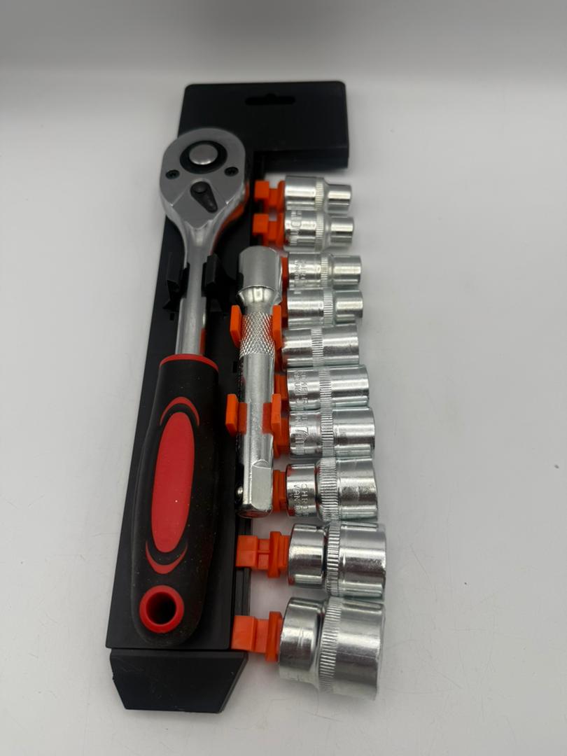 نام کالا : ست آچار جغجغه درایو 1/2 + رابط کمکی + بکس های : (11،10،8، 12، 13، 14، 15، 17، 21 و 24) معروف به بکس 12 پارچه ریلی آچاری بسیار کاربردی و کار راه انداز جهت مصارف عمومی و کارگاهی ، داخل خودرو و منزل دارای ریل پلاستیکی نگهداره آچار و متعلقات به جهت حمل و نقل آسان تر وسیله ای ضروری برای هر منزل و هر خودرو که شما را از پرداخت هزینه های متفرقه به تعمیرکاران بی نیاز می کند دارای 10 سری بکس متداول و پرکاربرد دارای درایو 1/2 اینچ با کیفیت.